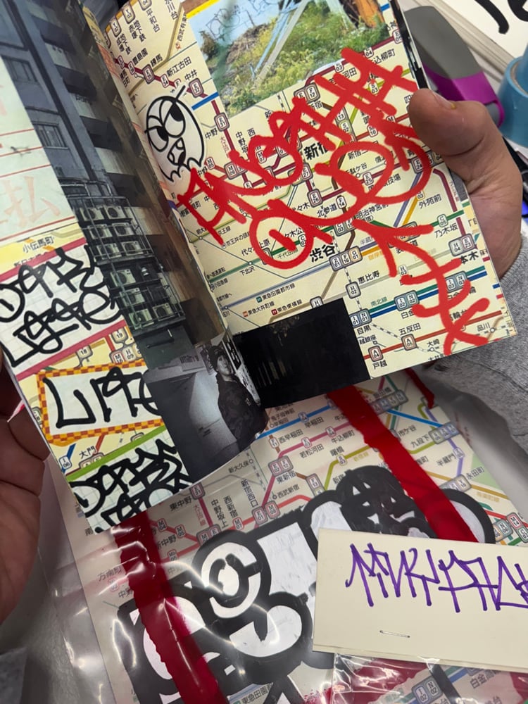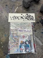 This handmade, full-color 35-page zine features photos and objects from Tokyo and Osaka and comes with five handmade Avery name badges plus a unique 1/1 Tokyo Metro map with a LITER throw-up. Each of the 20 copies is hand-packaged, signed, and numbered, with a random free item like markers, white-outs, streaks, or tips I use. Four orders will also receive a brand-new Outi5000 or PX30 Unipaint marker. Shipping is $10 domestic and $20 international.